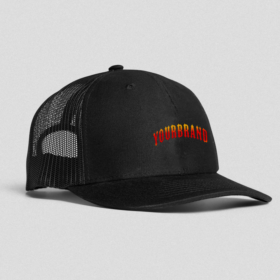 Logo position:brim/visor, front panel, Left panel, Right Panel, back curved part