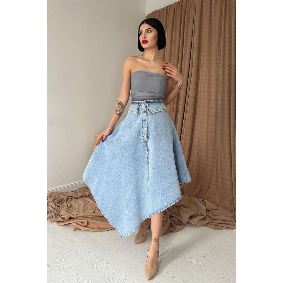 Wholesale Maxi Casual Denim Skirt Belt Detail Sexy Formal Vintage Plaid Dot Pattern Distressed Technics Button Decoration Autumn