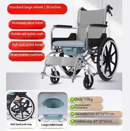 Fauteuil roulant en métal de chaise d'aisance portative médicale en gros pour le transfert patient âgé chaise d'ascenseur de toilette