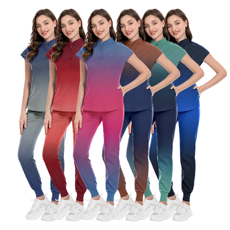 Vente en gros gommage médical dégradé de couleur col montant ensemble de gommage femmes clinique dentaire médecins chirurgie soins uniforme