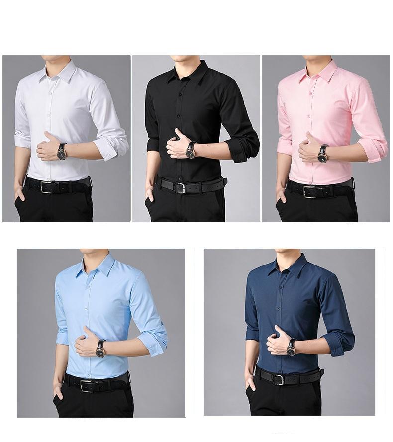Chemise formelle de costume pour homme, collection Printemps-Été 2026, couleur unie, blanche, à manches longues, boutonnée, coupe slim, noire, pour affaires, vente en gros