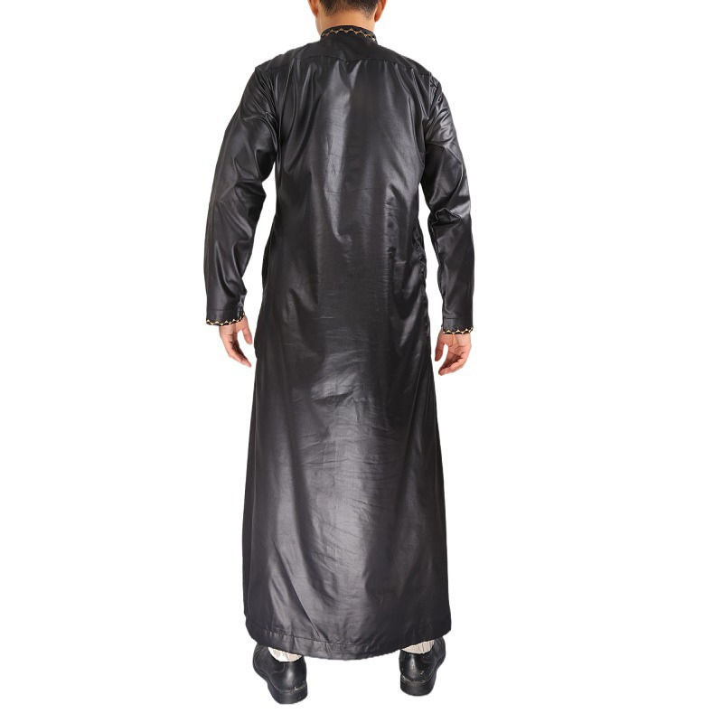 Vente en gros de thobe arabe grande taille pour hommes vêtements islamiques musulmans thobe caftan pour hommes thobe noir personnalisé brodé en or