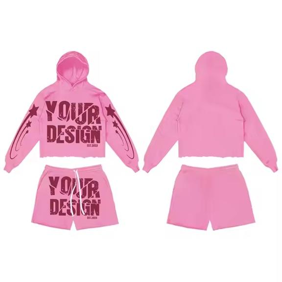 Wholesale Men's 100% Cotton Casual Hoodie Short Set Printed Solid Design for Winter Season