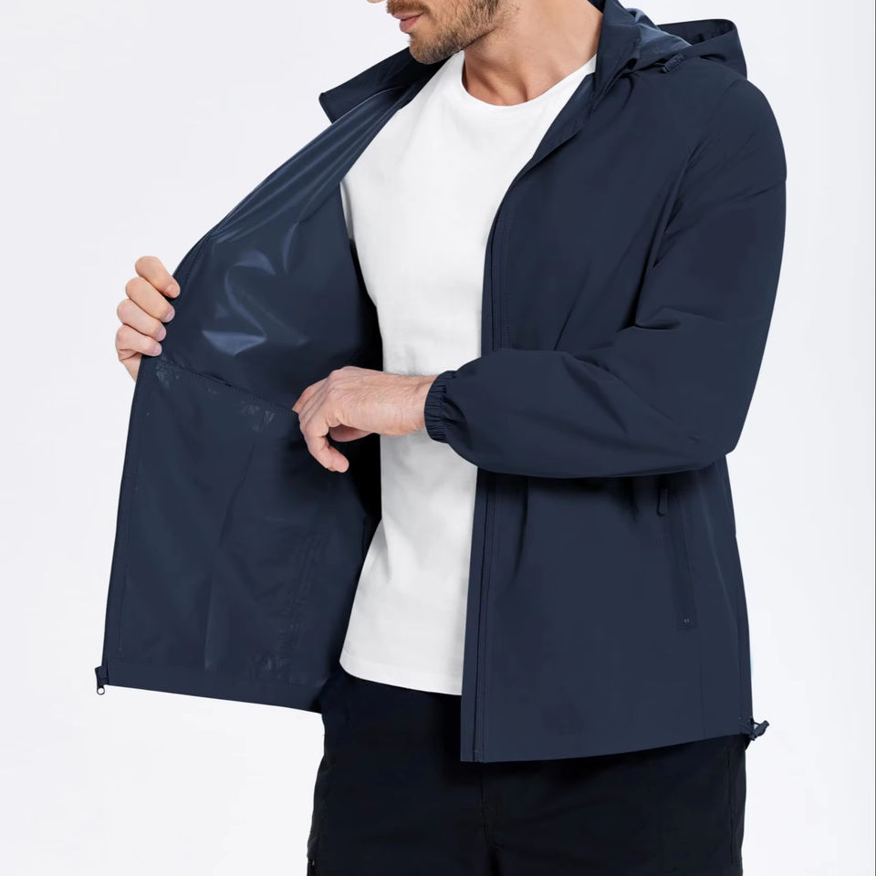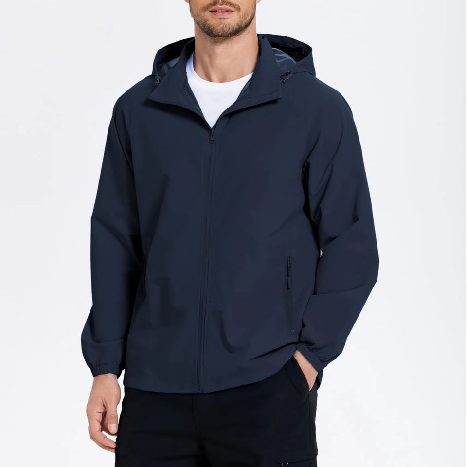 Ventes en gros de vestes softshell pour hommes, 100% polyester, imperméables, streetwear, à capuche, fermeture éclair