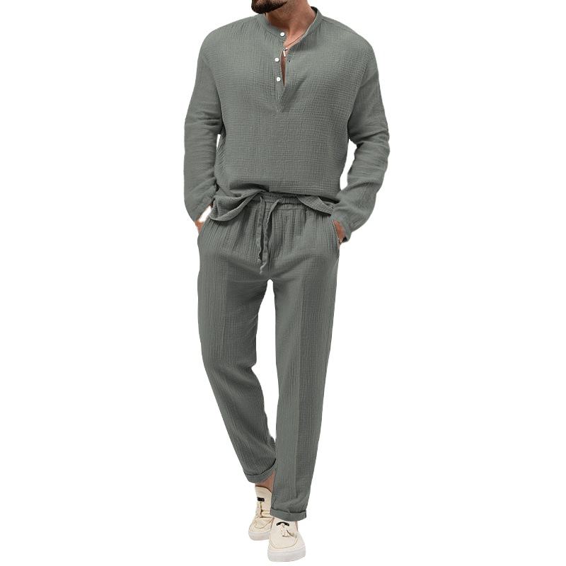 Vente en gros Ensemble 2 pièces pour hommes Ensembles décontractés en coton et lin à manches longues pour hommes Ensembles chemise et pantalon de luxe pour hommes 2026