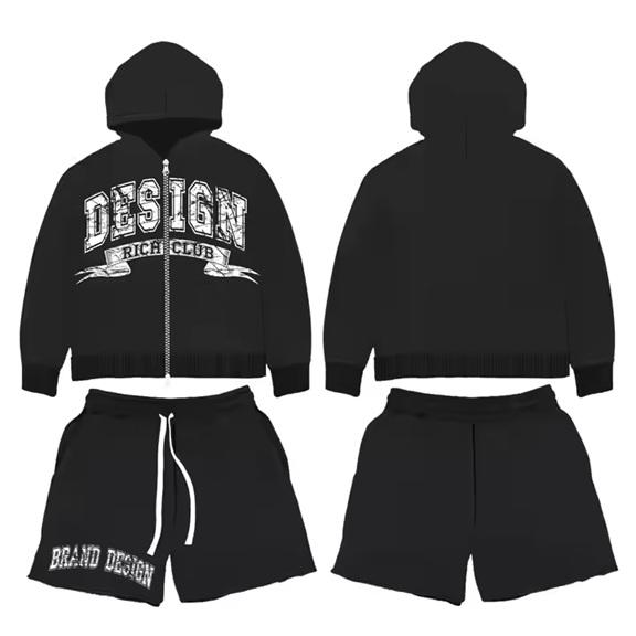 Wholesale Men's Casual 100% Cotton Hoodie Short Set Breathable Lightweight Eco-Friendly Winter Printed Rhinestone Seamless