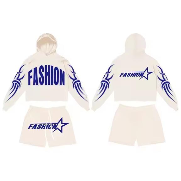 Wholesale Men's Casual Lightweight Eco-Friendly Winter Printed Rhinestone Technics Solid Hoodie Short Set 100% Cotton