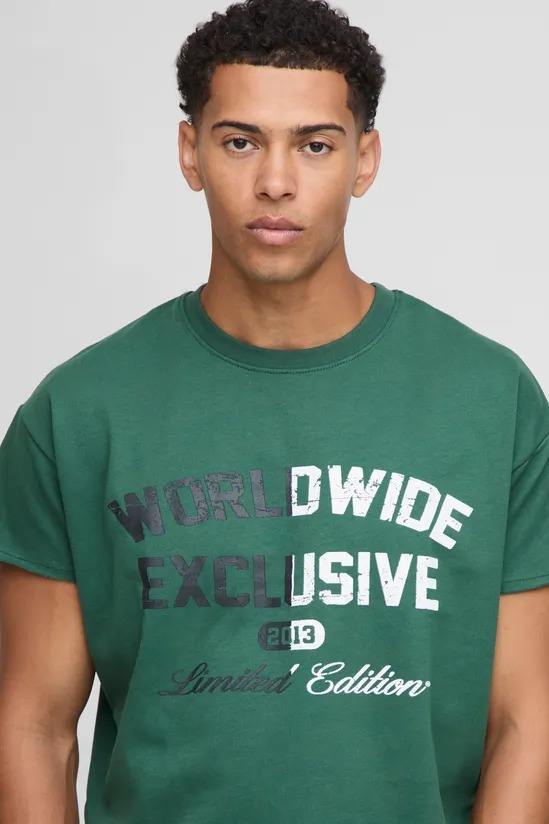 Wholesale Men's Custom Forest Oversized Cropped Loopback Worldwide Raw Edge T-Shirts Made in Pakistan