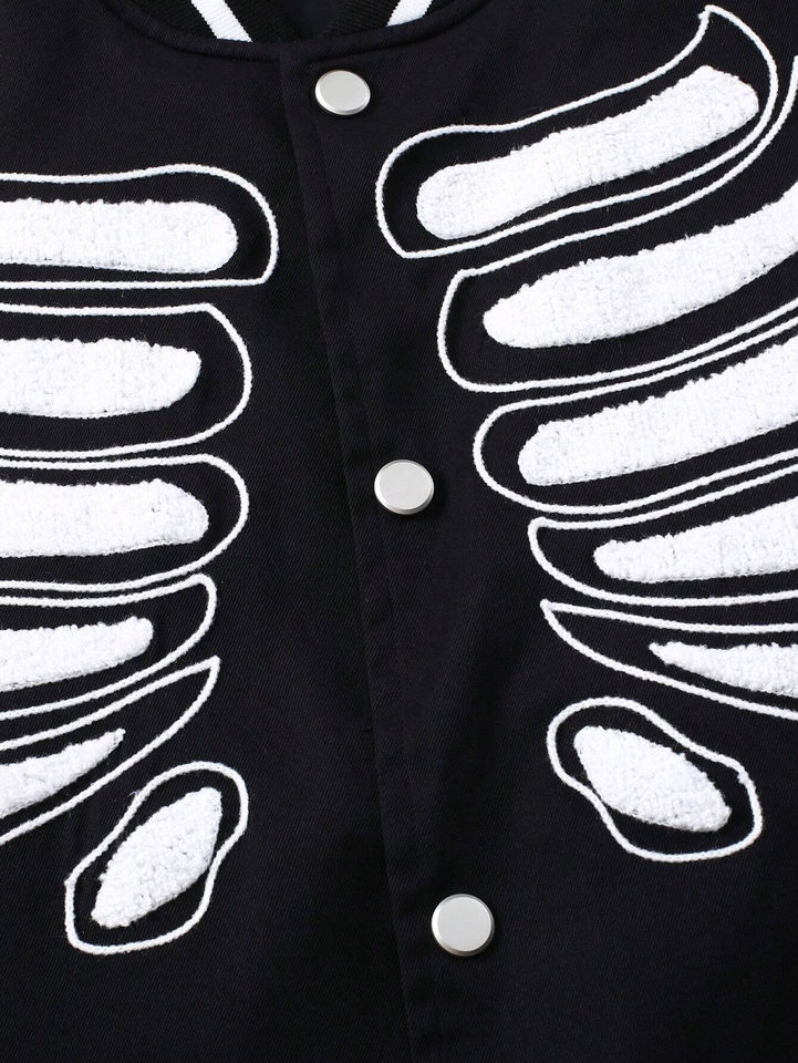 Veste universitaire personnalisée à imprimé squelette à bordures rayées pour hommes sans t-shirt veste Streetwear pour hommes vente en gros