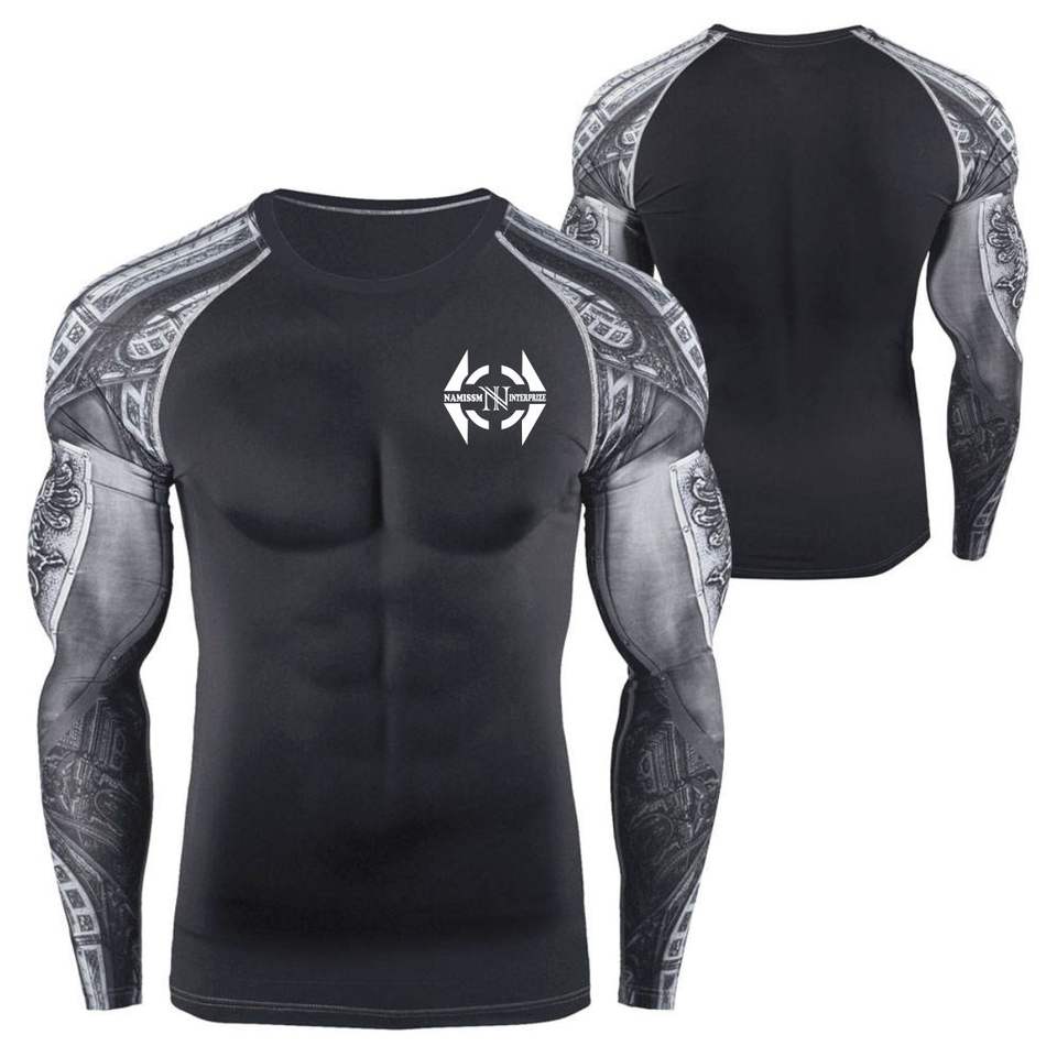 Vêtement de compression MMA pour hommes en gros, sublimé, en spandex/polyester, manches longues, séchage rapide, anti-frottement, respirant pour un sport optimal