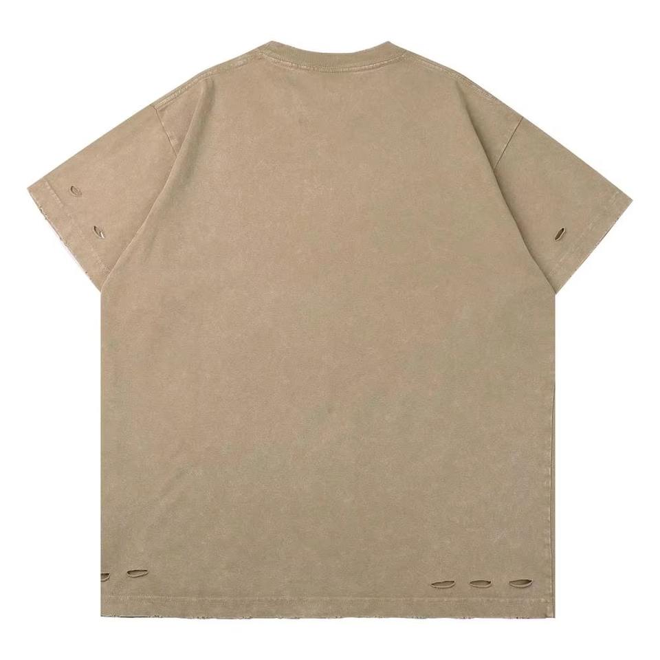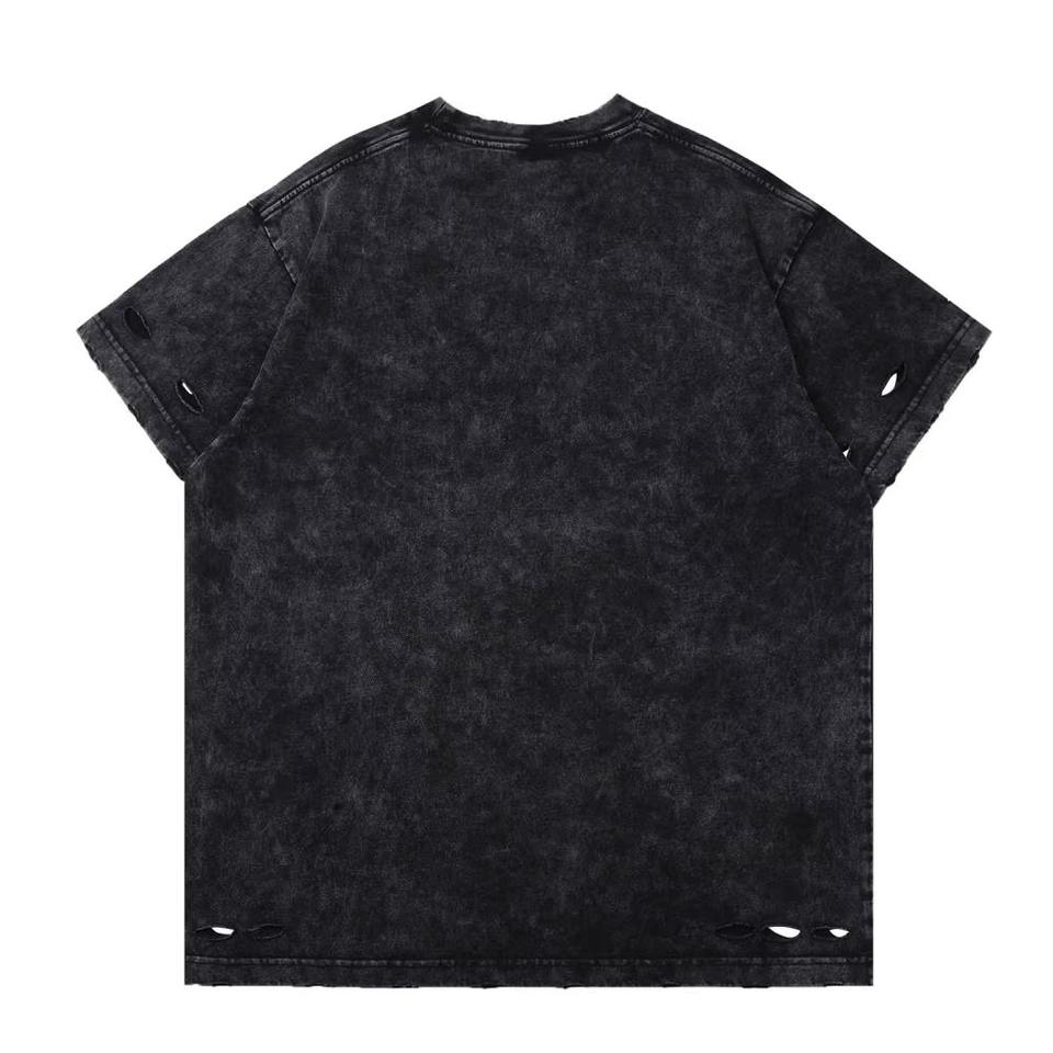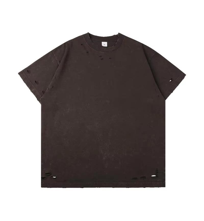 T-shirt Homme Oversize Coupe Boxy Délavé à l'Acide Col Rond Manches Courtes Effet Stone Washed avec Logo Avant en Diverses Tailles – Vente en Gros