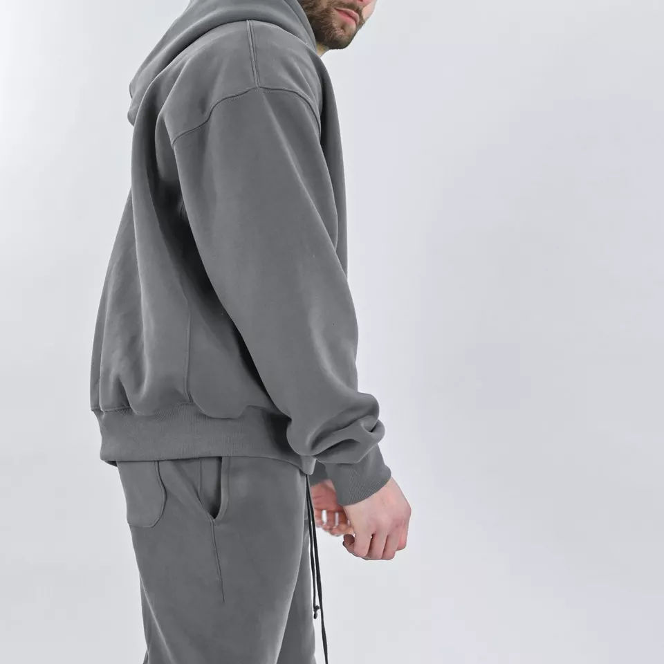 Wholesale Men's Solid Grey French Terry Unlined Stone Wash Hoodies Long Sleeve Drop Shoulder Jumpers Embossed Print XS Winter