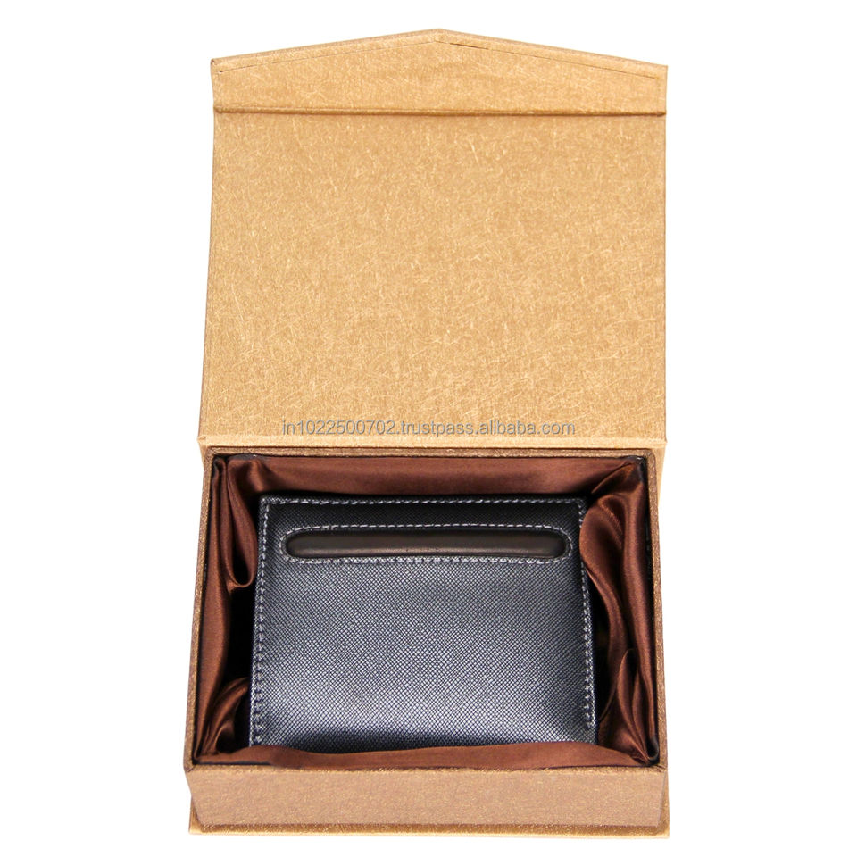Vente en gros de portefeuille court élégant pour hommes avec logo personnalisé en cuir véritable boîte cadeau en polyester avec blocage RFID