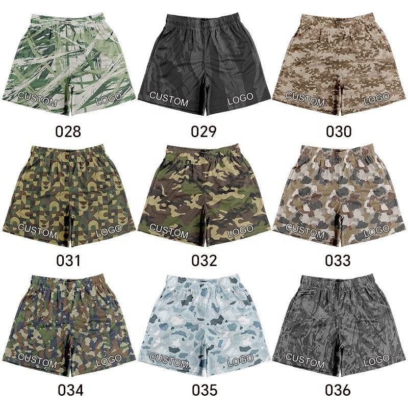 Vente en gros Short de gym 2 en 1 en polyester pour hommes avec impression de logo personnalisé pour l'été Basket Ball Short en maille imprimé camouflage pour hommes