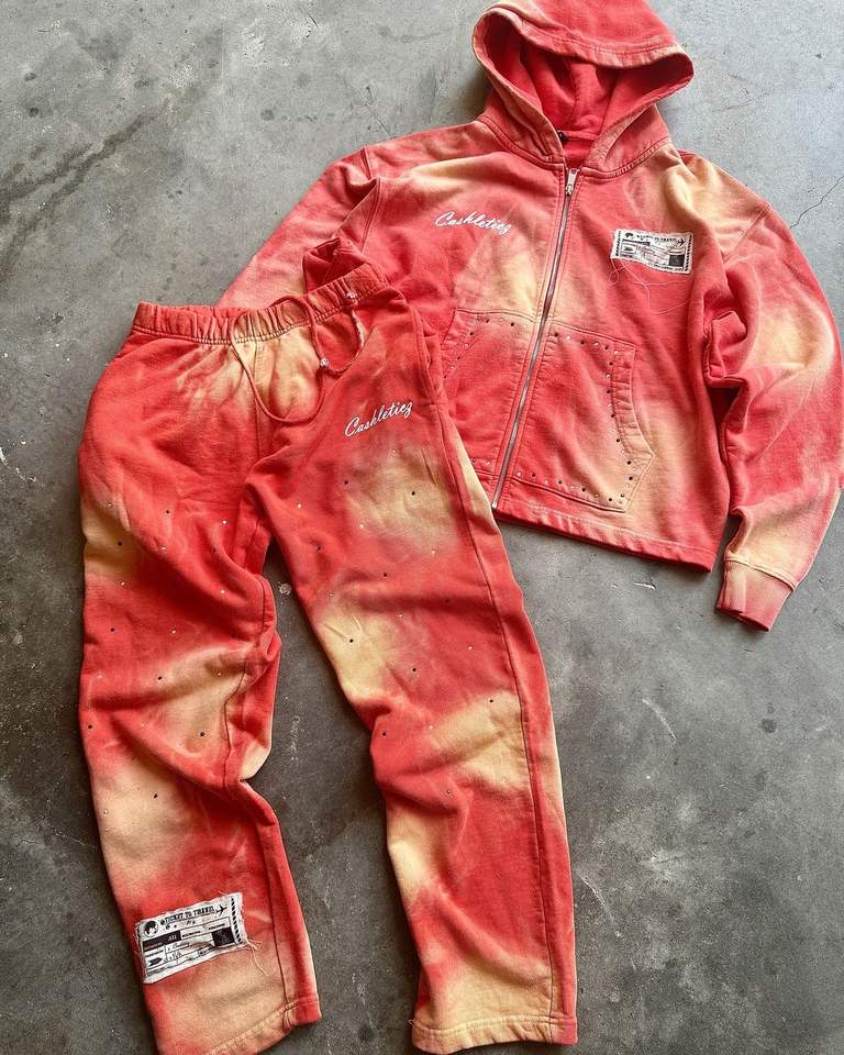Vente en gros Ensemble évasé vintage à motif uni avec logo personnalisé pour hommes, sweat à capuche zippé et survêtement de jogging pour l'hiver