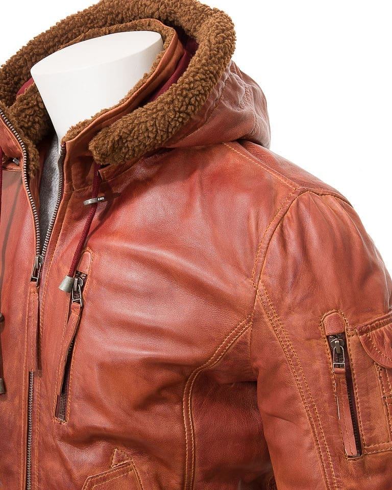 Wholesale Men's Winter Pure Sheepskin Leather Jacket Hooded Motorcycle Biker Jacket in Plus Size Hooded leather jacket for men