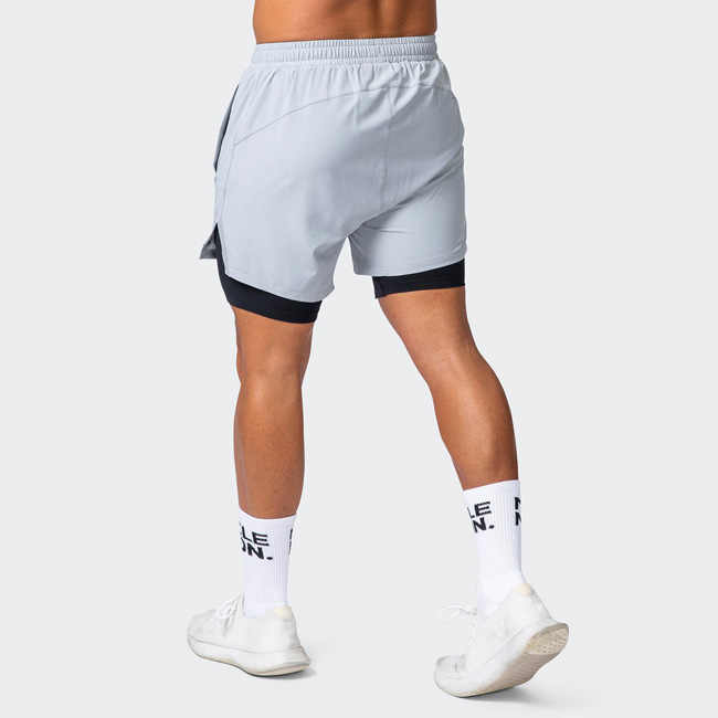 Vente en gros de shorts de gym 2 en 1 pour hommes, vêtements d'entraînement et de fitness, shorts de sport personnalisés pour la course à pied pour hommes