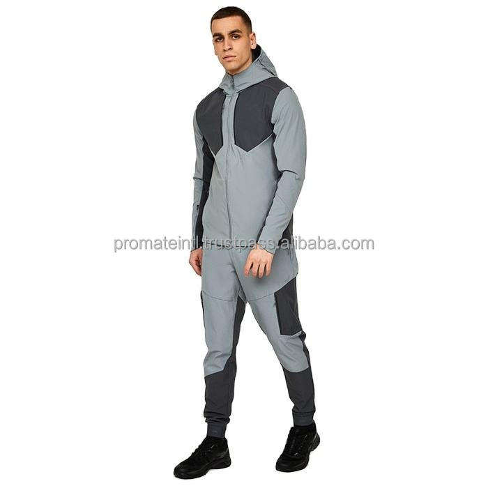 Vente en gros Tenues de sport pour hommes avec fermeture éclair 2 pièces Ensemble jogging avec capuche Veste survêtements avec logo personnalisé pour hommes