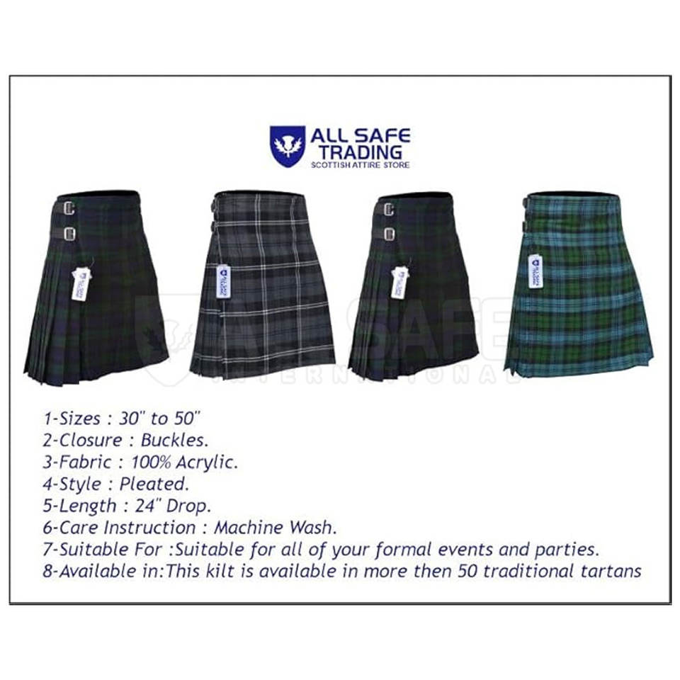 Product name:Traditional Scottish Pleated Tartan Kilt