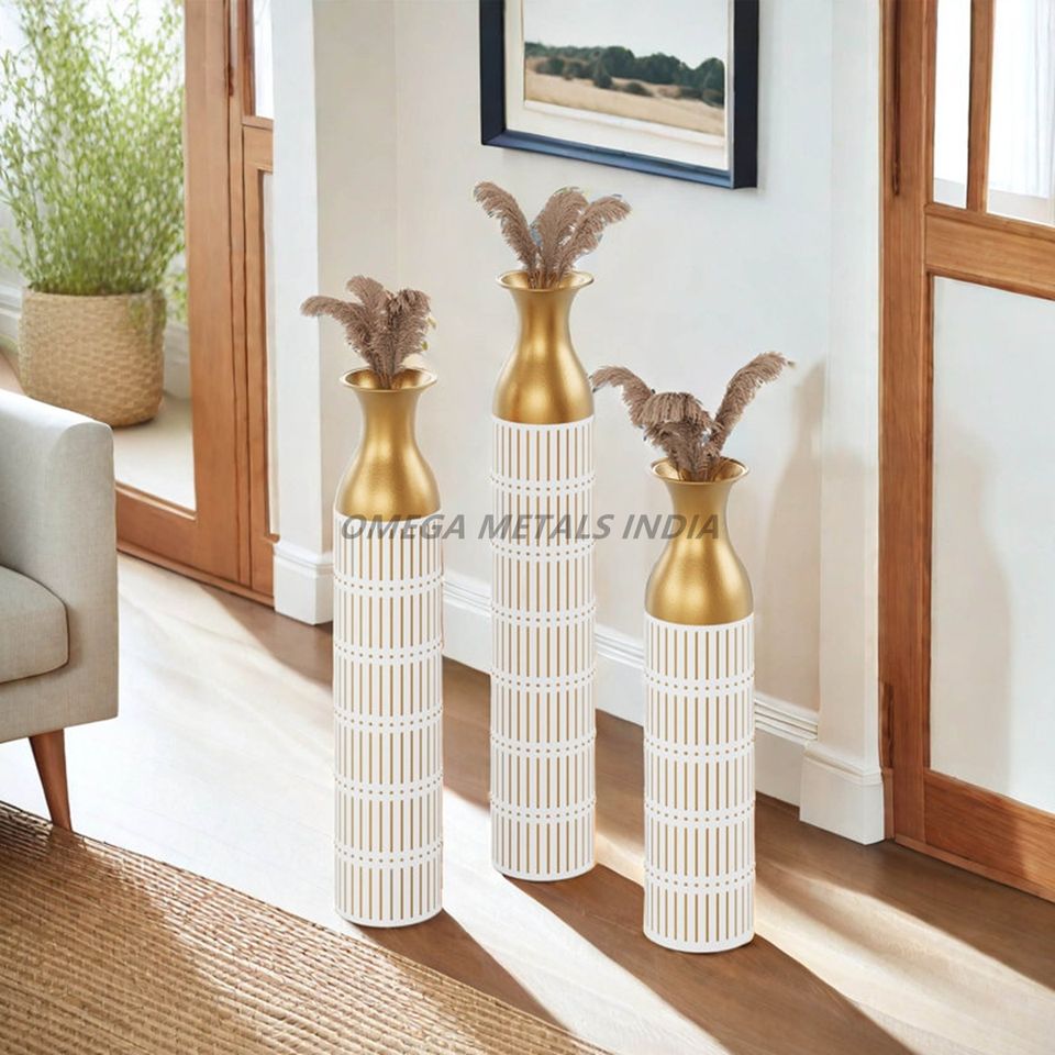 Wholesale Metal Vases Set in Elegant Black and Gold Colors with Unique Tall Shape and Intricate Cutout Design for Home Decor