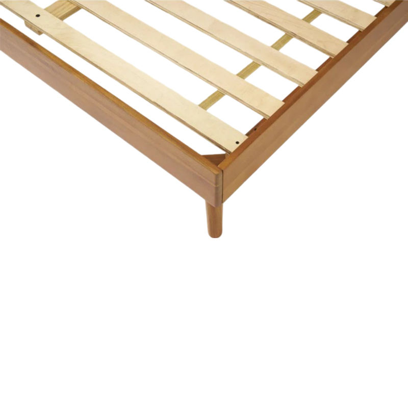 Nom du produit:Lit Double Mid-Century en Bois avec Pieds Écartés et Finition Naturelle