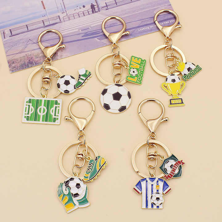 Porte-clés en alliage métallique avec logo d'équipe de football miniature, décoration de sac à dos, souvenir, porte-clés créatif pour étudiant, pour les fans de sport