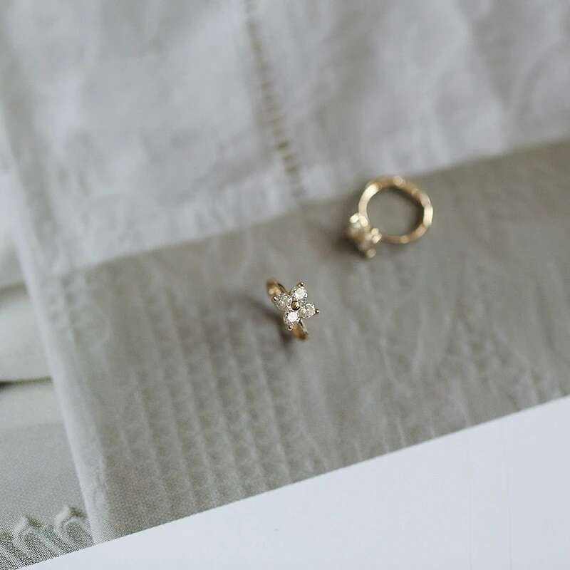 Vente en gros mini boucles d'oreilles créoles à petites fleurs à quatre feuilles en or pur 9 carats avec zircon boucle d'oreille simple pour les fêtes Kj234