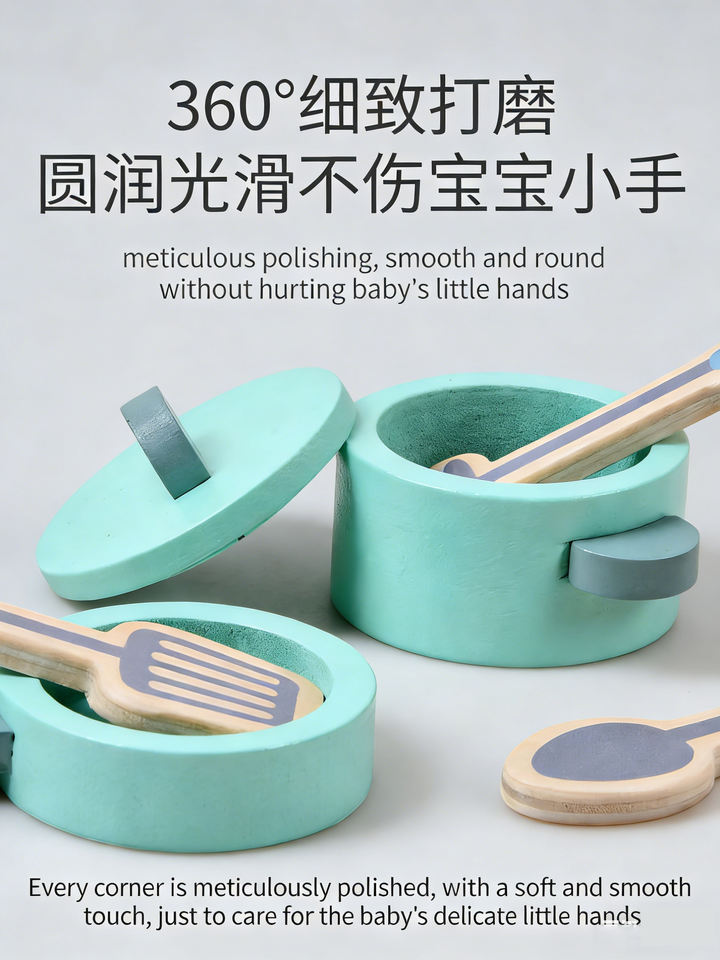 Ensemble de cuisine miniature en gros avec réfrigérateur et cuisinière à gaz, jouet éducatif en bois pour enfants, gris