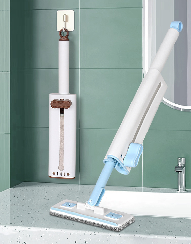 Mini serpillière Mopi en ABS, absorbante, plate, à pression automatique, avec manche rotatif, tête de serpillière en tissu, nettoyage pratique des saletés