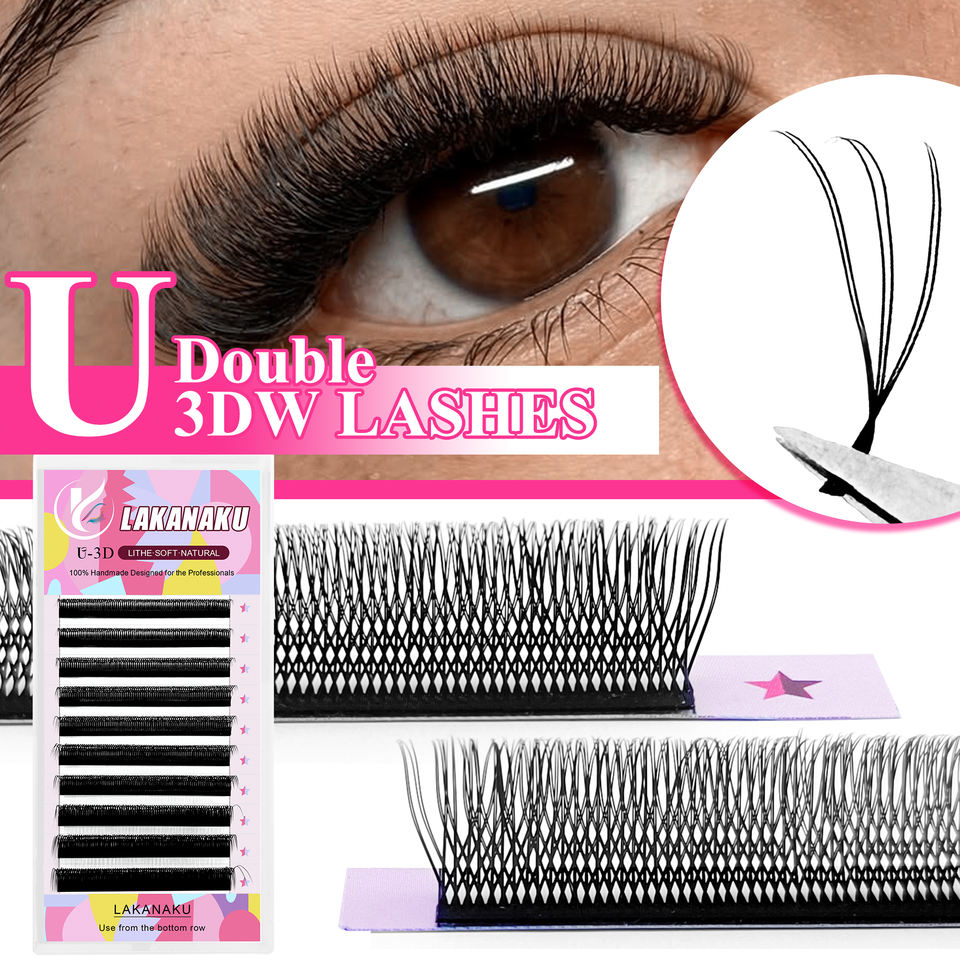 Extensions de cils en gros : Vison double pointe, trèfle 3D, PBT coréen, forme U, YY, volume doux personnalisé, 4D 5D, U W