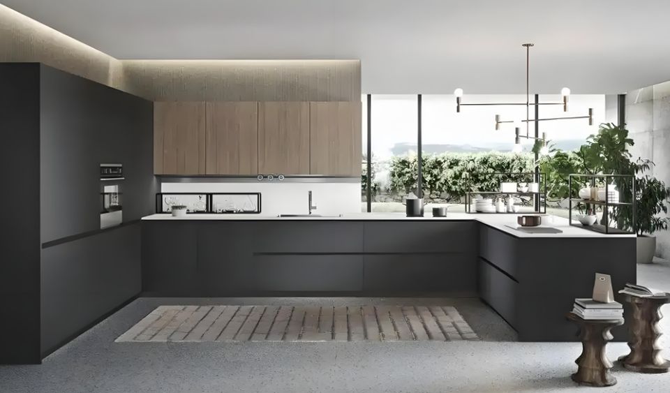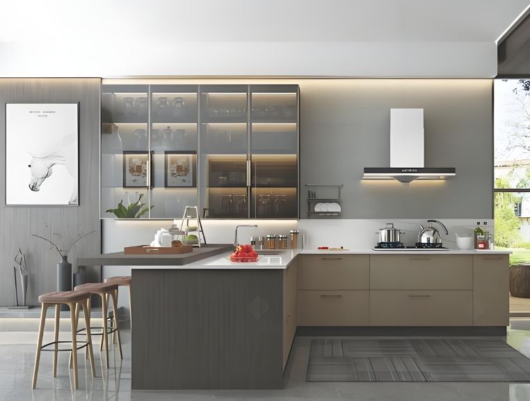 Vente en gros d'armoires de cuisine modernes personnalisées armoires de cuisine modulaires murales en bois encastrées pour villa à bon prix