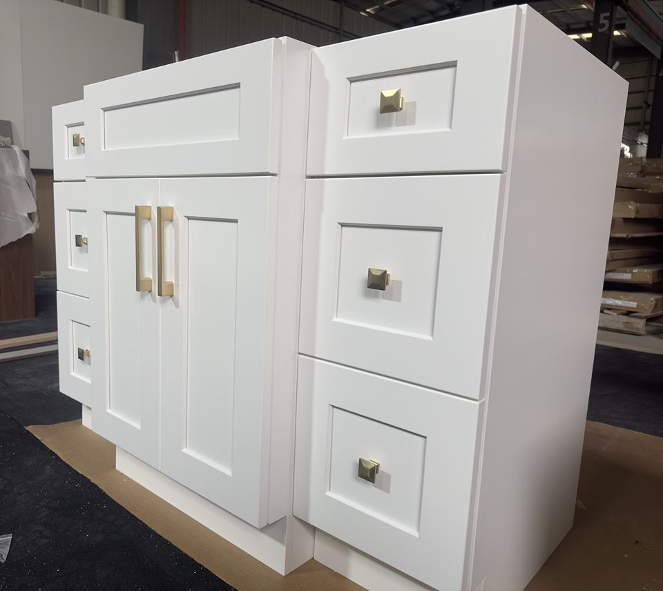 Meubles-lavabos de salle de bain modernes en bois massif, résistants à l'eau, à fermeture douce, écologiques et éclairés, pour hôtels (vente en gros)