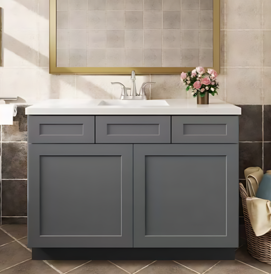 Wholesale Modern Gray Bathroom Cabinet Vanity Single Sink Bathroom Vanity Cabinet with Dove-Tailed Drawers Soft-Closing Doors