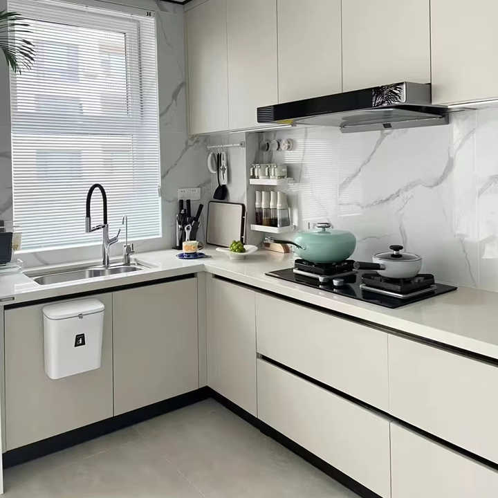 Accessoires:Dosseret, Tiroir panier, Coulisse, Robinet, Poignée et bouton, Charnière, Stockage à plateau tournant, Boîtes de riz, Cabinet de base d'évier, Coup de pied, Conteneur de déchets