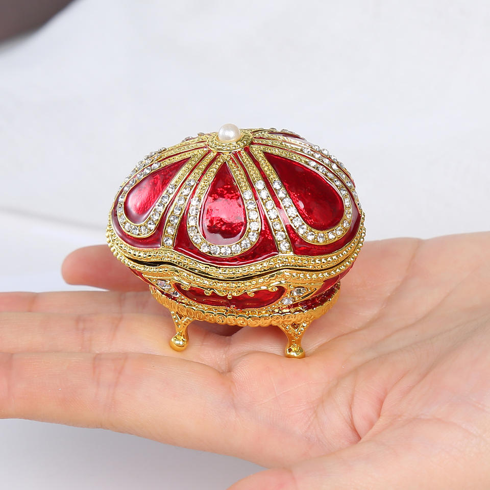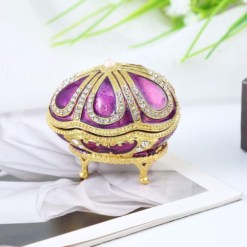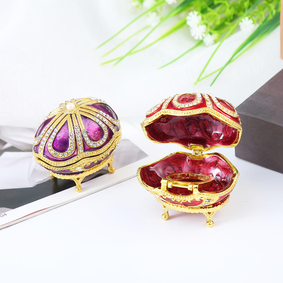 Boîte à bijoux en métal moderne en gros, peinte à la main, émaillée, œuf de Pâques Fabergé pour le rangement de bibelots, décoration de la maison, Pâques