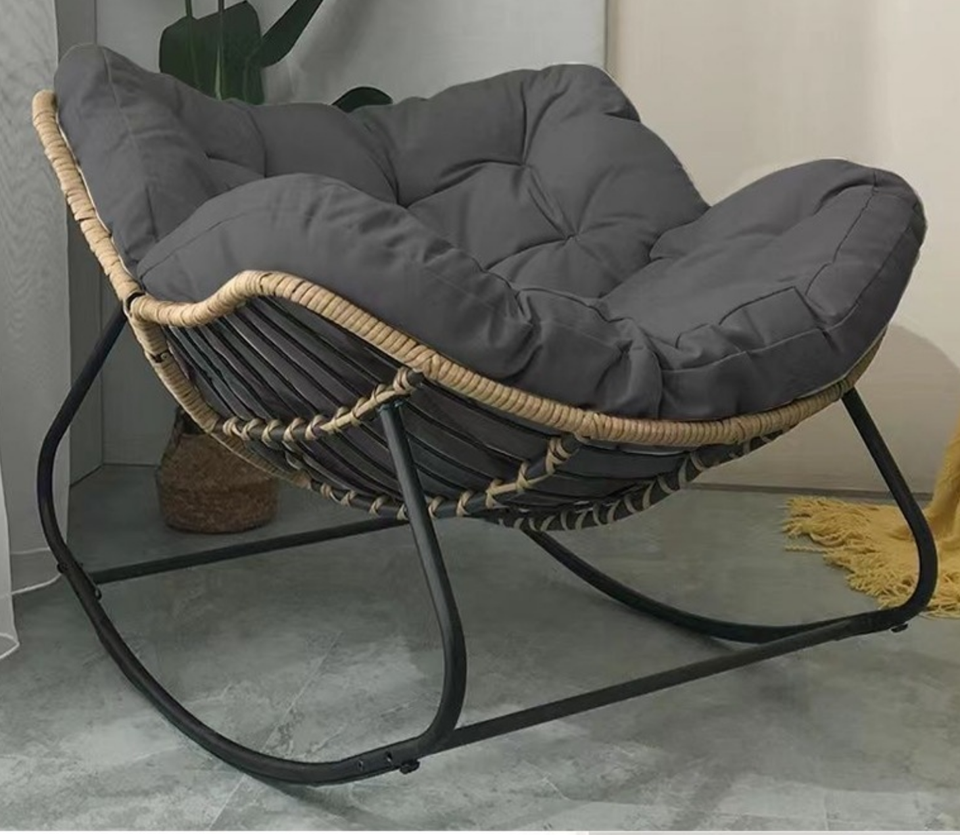 Fauteuil à bascule moderne en rotin, confortable, en tissu, pour adultes, chambre, appartement, intérieur, extérieur, balcon, villa