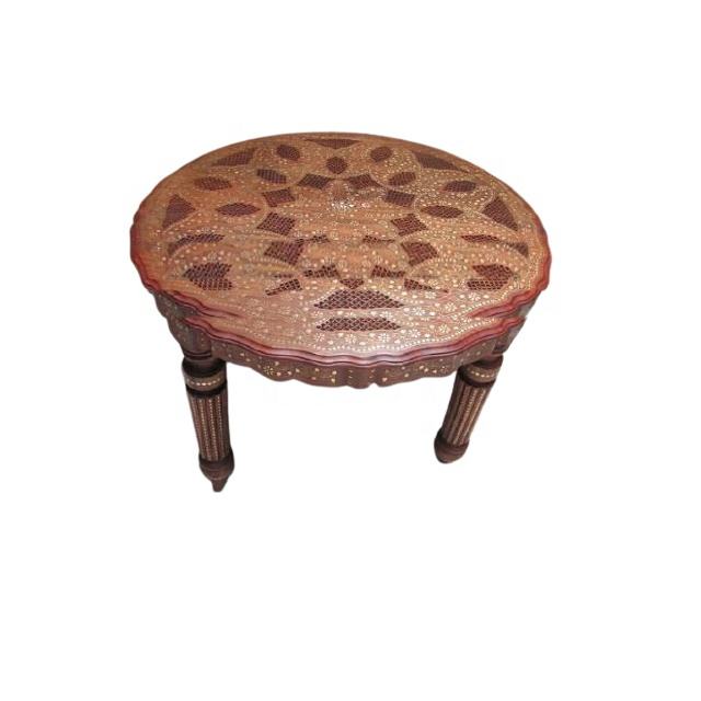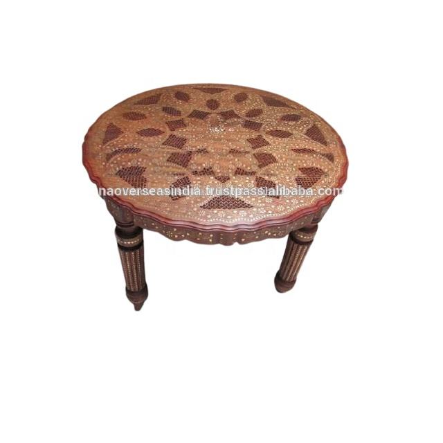 Vente en gros d'une table à manger ronde moderne en bois fabriqué à la main avec un beau design incrusté de laiton pour les meubles de salon