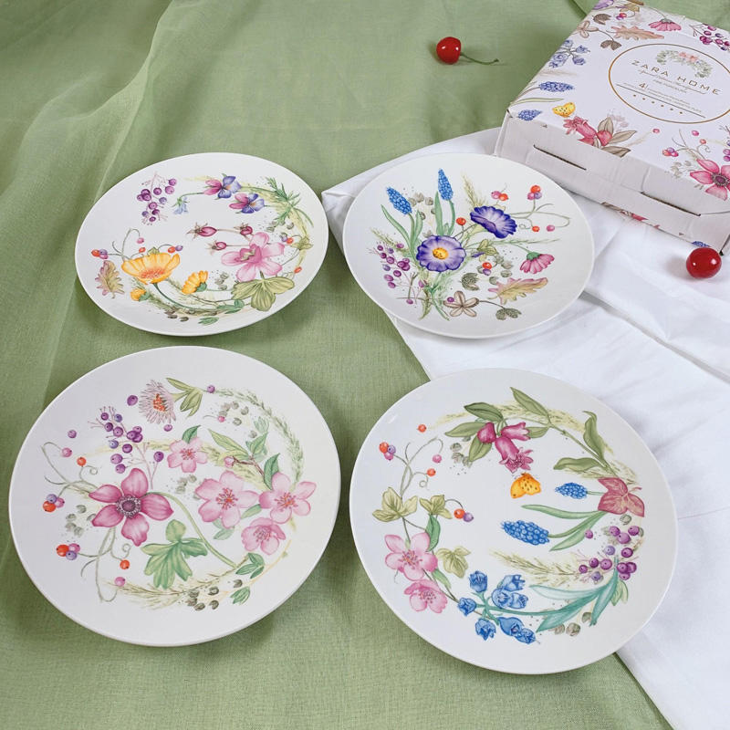 Vente en gros d'assiettes en céramique de style moderne, assiettes à dîner, ensembles d'assiettes à fleurs
