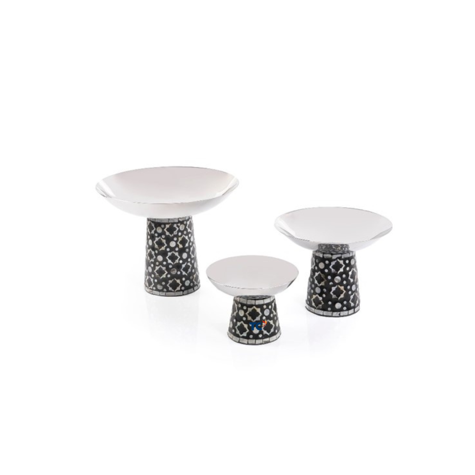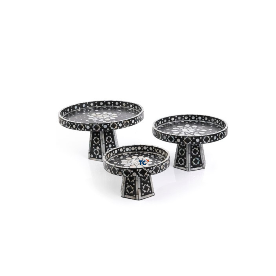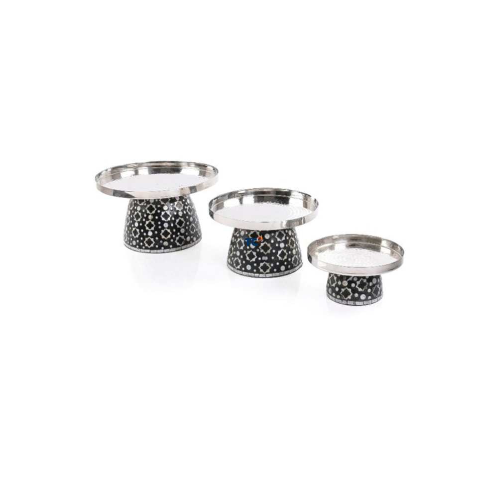Wholesale Mother of Pearl Stands Set of 3 Luxury Ramadan Eid Mother of Pearl Inlaid Cake Stand