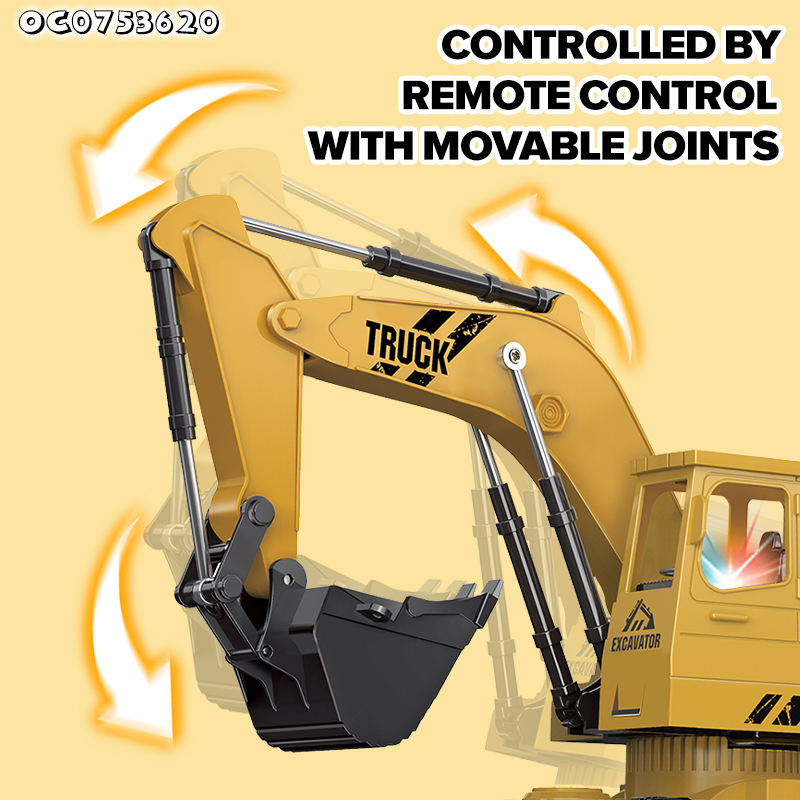 Vente en gros de joints mobiles 5 canaux Rc Engineering Vehicle Truck 1:16 Scale Remote Control Digger Excavator Toy avec lumière