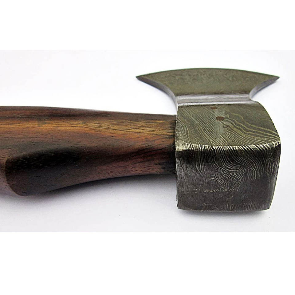 Hache multifonctionnelle en acier damassé avec manche en bois pour le camping en plein air avec votre logo, vente en gros