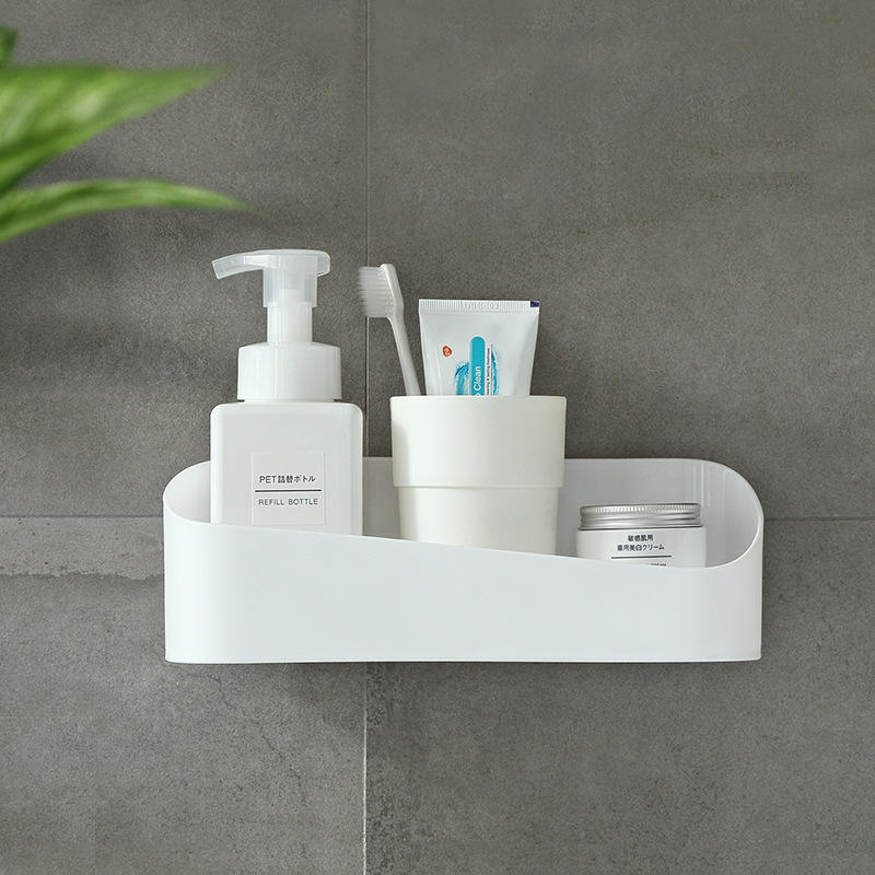 Étagère de rangement murale multifonctionnelle en plastique à un seul niveau, conception géométrique, fixation forte sans perforation, vente en gros