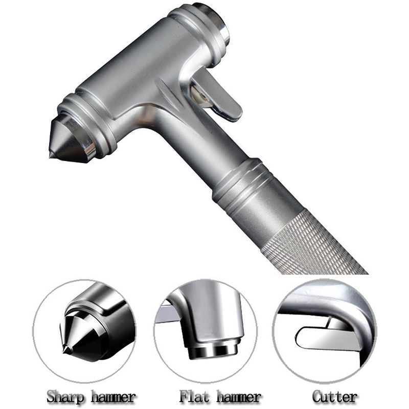 Marteau de sécurité multifonctionnel en alliage de zinc argenté 3-en-1 pour briser les vitres, évasion, survie et défense personnelle en voiture - Vente en gros