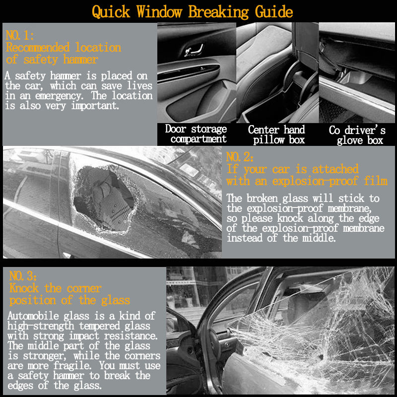 Briser la vitre pour s'échapper en cas d'urgence.Application