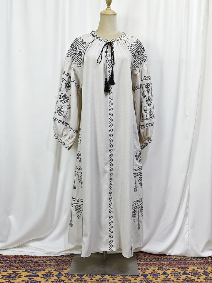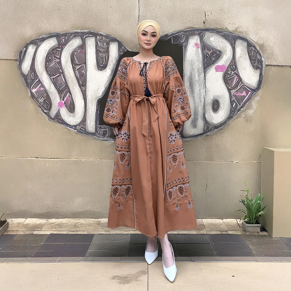 Vente en gros de nouvelles robes musulmanes à manches lanternes avec broderie lourde pour femmes