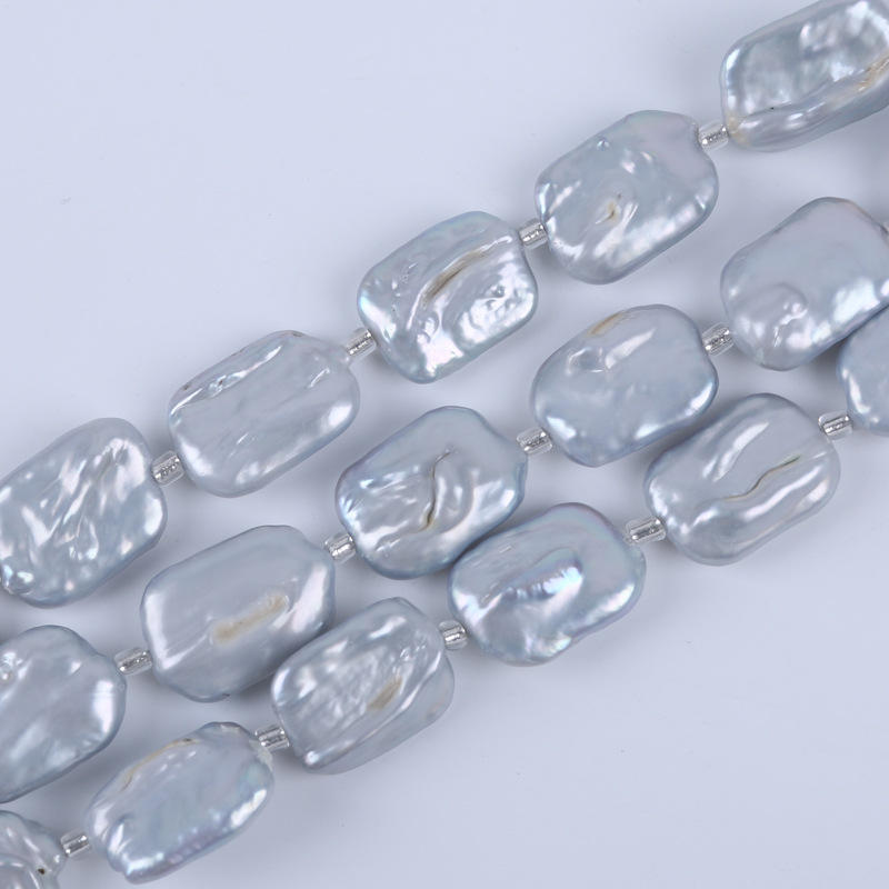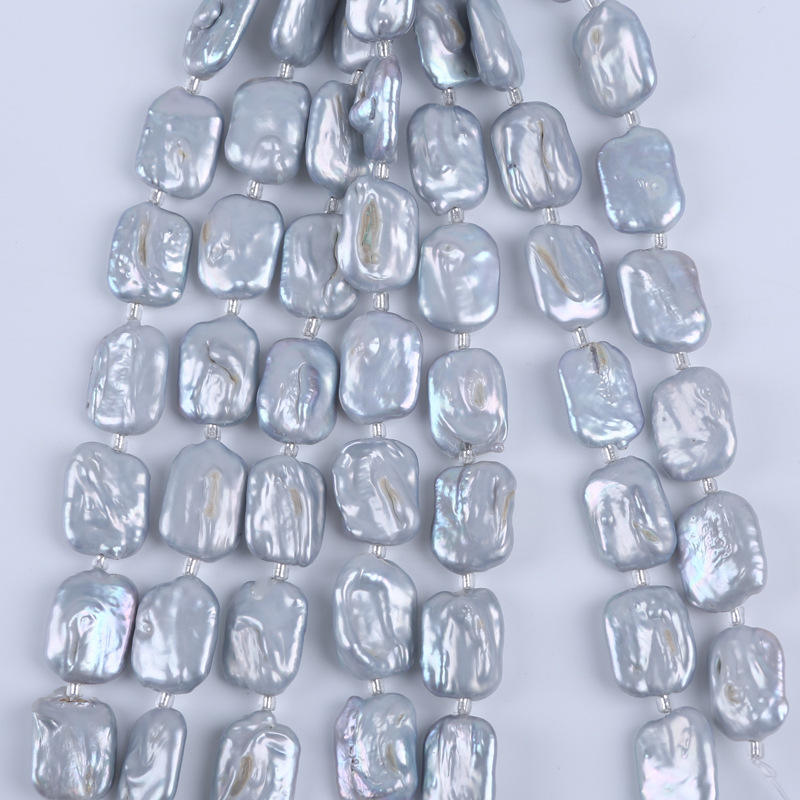 Wholesale Natural 18cm14-16mm Gray Plated Baroque Rectangular Freshwater Pearls DIY Loose Pearl Bracelet