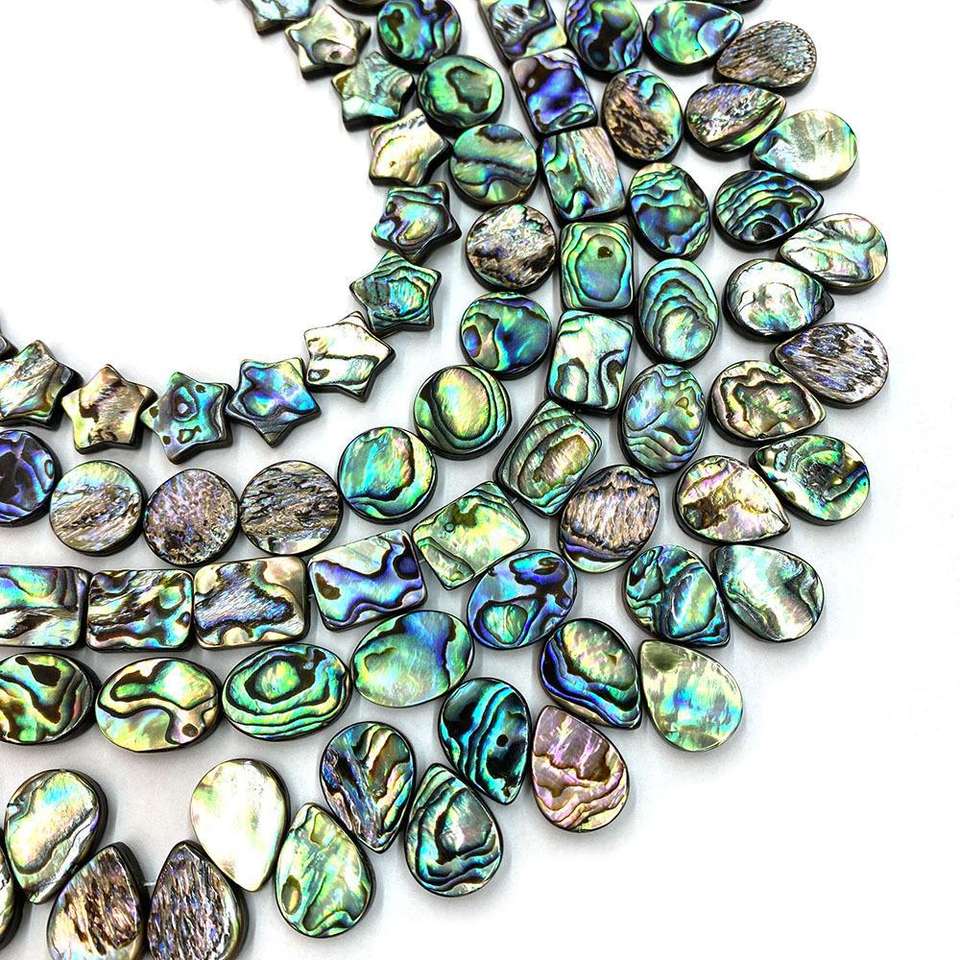 Vente en gros de perles de coquille d'ormeau naturel plat irisé rond carré étoile coeur ovale en forme de goutte entretoise pour collier bracelet