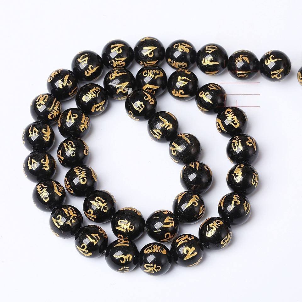 Wholesale Natural Black Agate Onyx Stone Beads Six-Character Proverb 6-10mm Loose Semi-Finished DIY Bracelet Necklace Jewelry