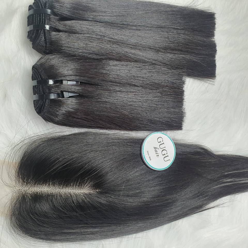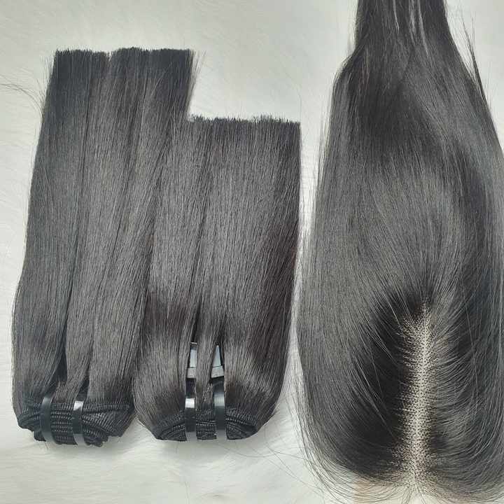 Extensions de cheveux vierges vietnamiennes Remy de couleur naturelle en gros, perruques avec fermeture, trame de cheveux, cuticules alignées, pour matière de dentelle