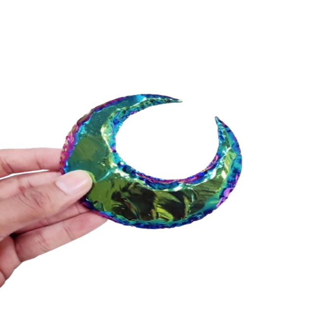 Titanium Aura 6-Inch MOON Fancy New Look Quartz Agate Heart Carved Reiki Art Super Quality Semi-Precious Stone Crafts Gemstone